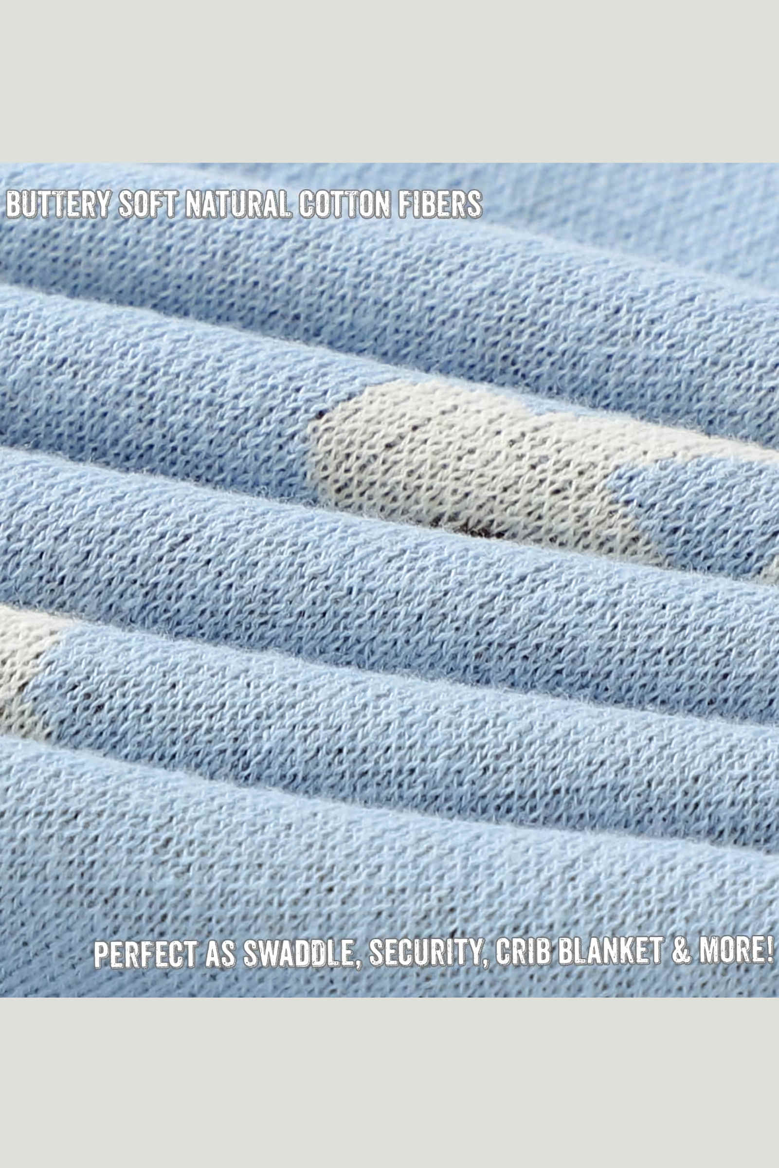 Crafted from Luxury Oeko Tex certified natural Pima cotton fibers, our baby blankets embody the pinnacle of quality and purity. Its natural cotton composition ensures a soft, breathable, and gentle embrace, ideal for the delicate skin of newborns and sensitive babies. The blanket's cozy, lightweight, and stretchy fabric provides a perfect blend of warmth and breathability, ensuring your baby or toddler remains comfortable and secure throughout the year. Measuring 36" x 32", this versatile all-season essential suits newborns, infants, and toddlers up to 2 years old, making it perfect for wrapping, swaddling, or cuddling. It fits seamlessly in strollers, car seats, cribs, and bassinets, ensuring your baby stays warm in winter and cool in summer.