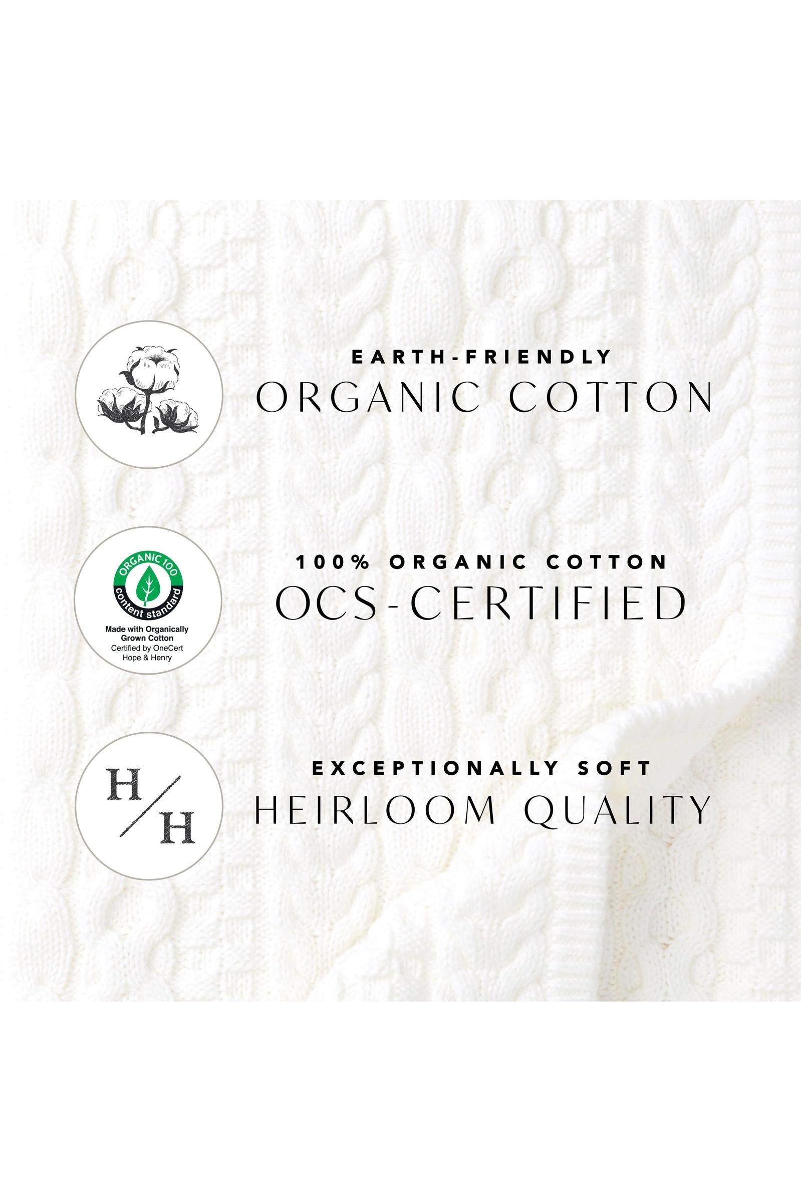 100% Organic Cotton, exclusive of trims. Garment is OCS-Certified.